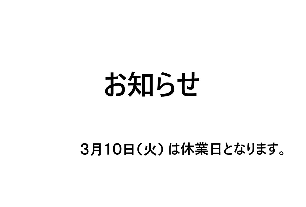 3月10日(火)は休業日となります。